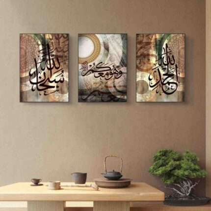 🕌 Islamic Calligraphy Wall Art Set | 3 Piece Wooden Frame | BK Mart Home Decor 🏆